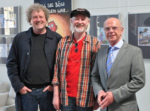 Präsident Weber und Til Mette sprachen ein Grußwort und lobten den Künstler für seine kritischen und gleichzeitig "albernen" Zeichnungen. "Eine sehr positive Eigenschaft", hob Mette hervor, "von der die Deutschen ruhig noch ein wenig mehr haben könnten". Christian Weber betonte, "Karikaturen von den Besten der Branche gehören inzwischen zum festen Bestandteil unseres Veranstaltungskalenders, und darauf sind wir stolz“.