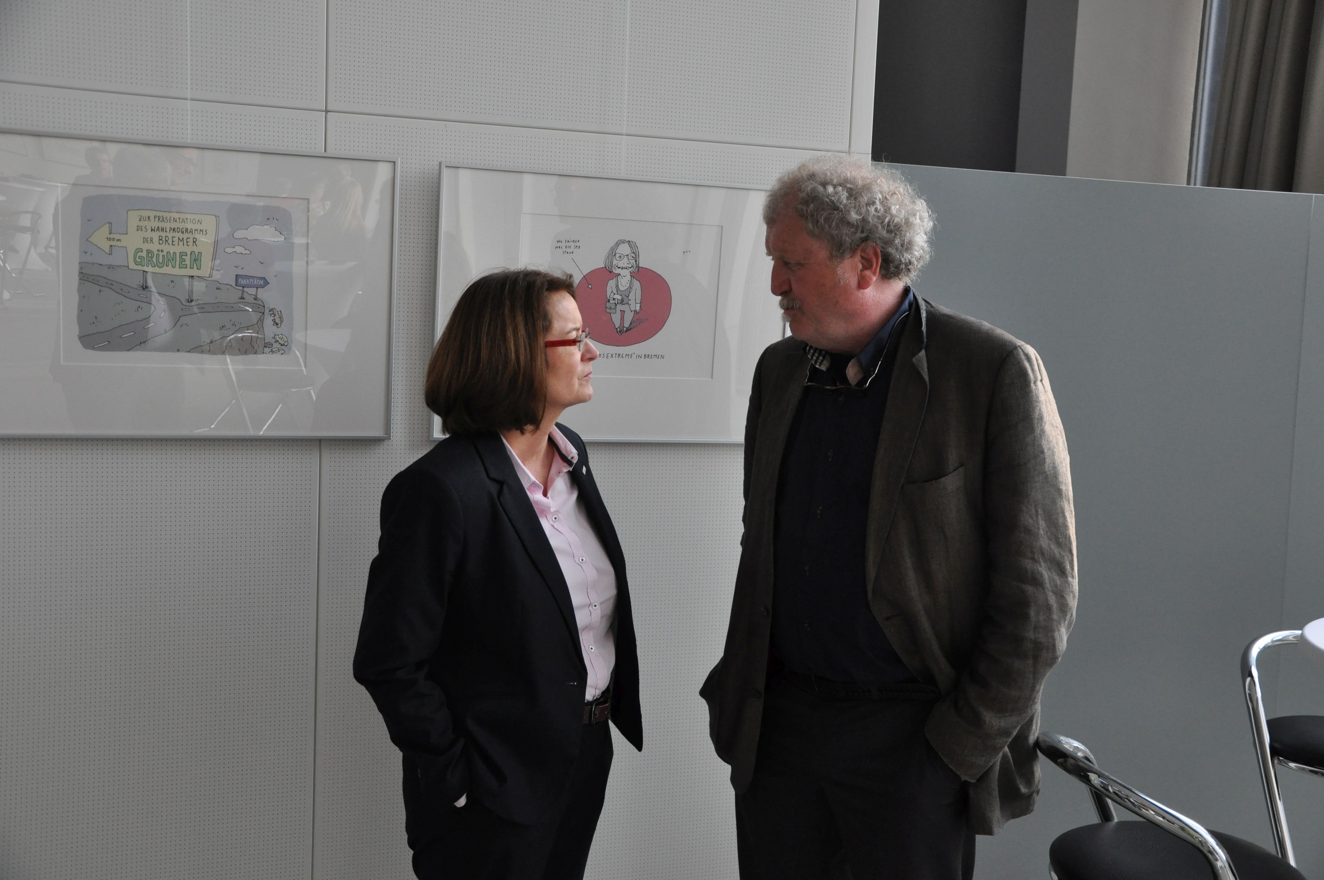 Für Bürgerschaftspräsidentin Antje Grotheer sind die Mettes Karikaturen am Sonntag im Weser-Kurier der gefragteste Zeitungsteil. Selbst Gegenstand einer Mette-Karikatur zu sein, sei quasi in Bremen der Ritterschlag in der Politik.