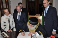 Als vertrauensstiftend für gemeinsame Projekte und von unschätzbarem Wert für menschliche Begegnungen hat Bürgerschaftspräsident Christian Weber die Städtepartnerschaft zwischen Haifa und Bremen bezeichnet. Im Gespräch mit dem Oberrabbiner von Jerusalem, Schlomo Mosche Amar, der an diesem Wochenende die Hansestadt und die Jüdische Gemeinde besucht, nannte er die von Hans Koschnick schon 1976 initiierte Städteverbindung einen Meilenstein im Prozess der Aussöhnung mit den Juden in Israel. Im Rathaus trug sich der Geistliche in das Goldene Buch der Stadt ein. Zur Delegation von Schlomo Mosche Amar gehört auch Eli Aflalo, ehemaliger israelischer Minister für Einwanderer. Der Oberrabbiner wird gemeinsam mit dem Landesrabbiner Netanel Teitelbaum und der Vorsitzenden der Jüdischen Gemeinde Bremen, Elvira Noa, am Sonntag ein Denkmal auf dem neuen Jüdischen Friedhof einweihen. Es soll an die jüdischen Opfer des Nationalsozialismus erinnern. Außerdem ist ein gemeinsames Gespräch des Oberrabbiners und des Bürgerschaftspräsidenten mit Flüchtlingen aus Syrien und Eritrea geplant.