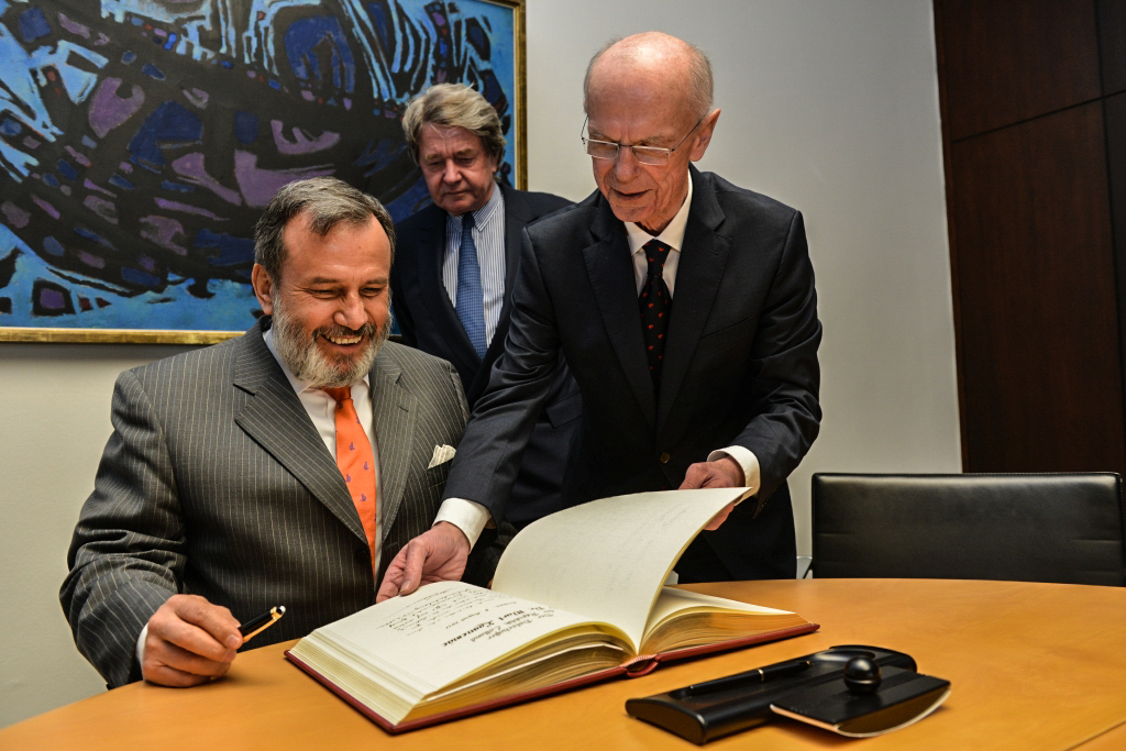 Der peruanische Botschafter Elmer José Germán Gonzalo Schialer Salcedo hat heute (5.4.) im Rahmen seines Antrittsbesuchs im kleinsten Bundesland auch Parlamentspräsident Christian Weber seine Aufwartung gemacht. Begleitet wurde der Botschafter, der diesen Posten seit gut einem Jahr bekleidet, von Generalkonsul Carlos Manuel Roman Heredia und Honoralkonsul Hans-Joachim Schnitger.