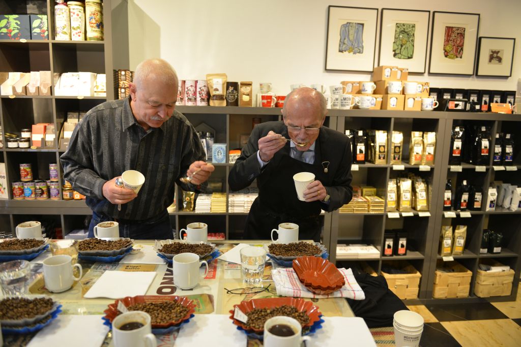 Seit knapp fünf Jahren hat Martin Büchler sein Kaffeegeschäft in der Böttcherstraße in Bremen, "hier kommt der Kaffee direkt vom Hafen röstfrisch auf den Tisch“. Zum ersten Mal den eigenen Kaffee rösten, das durfte am Freitag auch Bürgerschaftspräsident Christian Weber. Bei einer professionellen Kaffeeverkostung, dem „Cupping“, wurde Kaffee aus Äthiopien bis Guatemala probiert.