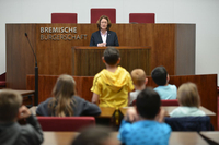 „Das heutige Jubiläum 70 Jahre Grundgesetz ist ein Tag, der die Bremische Bürgerschaft mit Stolz erfüllt. Das Grundgesetz stellt die Würde des Menschen in das Zentrum. Es bindet Gesetzgebung, Verwaltung und die Rechtsprechung an die Grundrechte als unmittelbar geltendes Recht. Es garantiert die freie Entfaltung der Persönlichkeit und die Gleichheit der Menschen vor dem Gesetz. Erst mit dem Grundgesetz sind Frauen und Männer gleichberechtigt. Grundrechte, wie die Religionsfreiheit, die Meinungsfreiheit, die Rundfunkfreiheit, die Pressefreiheit, die Versammlungsfreiheit oder die Freiheit, seinen Beruf frei wählen zu können, finden ihre Grundlage in ihm. Es schaffte in Westdeutschland die Todesstrafe ab und garantierte den Anspruch auf rechtliches Gehör in Gerichtsverfahren. Keines dieser Rechte war nach der Herrschaft des Nationalsozialismus selbstverständlich, und sie sind auch heute nicht selbstverständlich.“