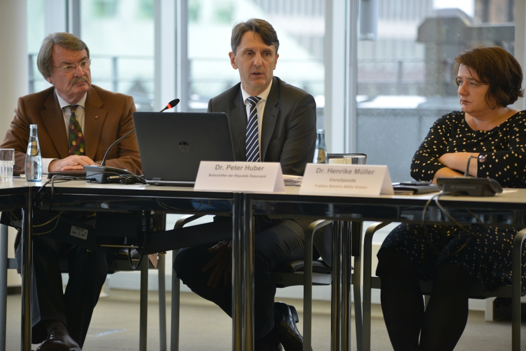 Traditionell besuchen die Botschafter der Nationen, die gerade den Vorsitz im Rat der Europäischen Union innehaben, den Europa-Ausschuss der Bremischen Bürgerschaft. Heute (23.10.) setzte der österreichische Botschafter Dr. Peter Huber diese Tradition fort: Vor den Mitgliedern des Ausschusses referierte er über das Programm seines Landes in der laufenden Amtsperiode, die mit Ablauf dieses Jahres endet.