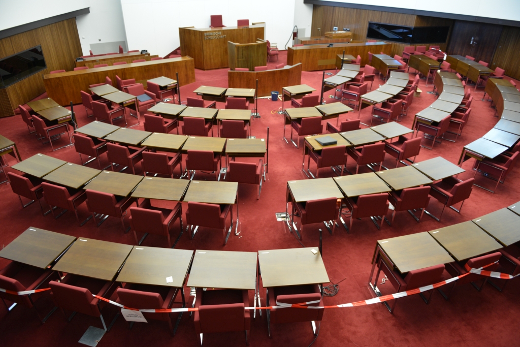 Mit den konstituierenden Sitzungen der Bürgerschaftsfraktionen hat heute (8.6.) die 19. Legislaturperiode begonnen. Neben SPD, CDU, B'90/Die Grünen, LINKE und Bürger in Wut sind künftig auch FDP und AfD im Parlament vertreten. Der Plenarsaal wird derzeit noch für die veränderten Mehrheitsverhältnisse hergerichtet, hierzu müssen die Abgeordnetenpulte neu im Boden verschraubt werden.