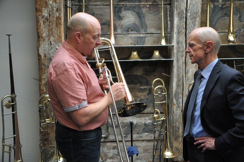 Bei Thein Brass sind die Hände auch heute noch das wichtigste Werkzeug, davon durfte sich der Bürgerschaftspräsident bei einem abschließenden Rundgang durch die Werkstatt überzeugen. Die fertigen Instrumente werden weltweit versendet und gehen an viele international bekannte Künstler. Christian Weber zeigte sich beeindruckt: „Ein toller Beruf, der Ihnen sichtlich viel Freude bereitet. Ich kann Ihre Begeisterung verstehen - es ist faszinierend, was Sie hier produzieren.“