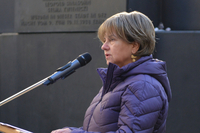 Bevor der Landesrabbiner den Kaddish sprach, hat Dr. Miriam Weitman vom Schicksal ihrer Großmutter berichtet. Sie wurde kurz vor Ende des Zweiten Weltkriegs in einem Zug quer durch Deutschland gefahren – ohne Essen, ohne Nahrung. Am fünften Tag starb ihre Großmutter – sie wurde einfach neben die Schienen geworfen. „Von einer zehnköpfigen Familie blieben nur noch vier übrig. Am Holocaust-Gedenktag entzünden die Juden sechs Gedenkkerzen zum Gedenken an die 6 Millionen Juden, die während des Holocausts ermordet wurden. Die 6 Kerzen erinnern mich auch an die sechs Opfer der Familie meines Vaters.“