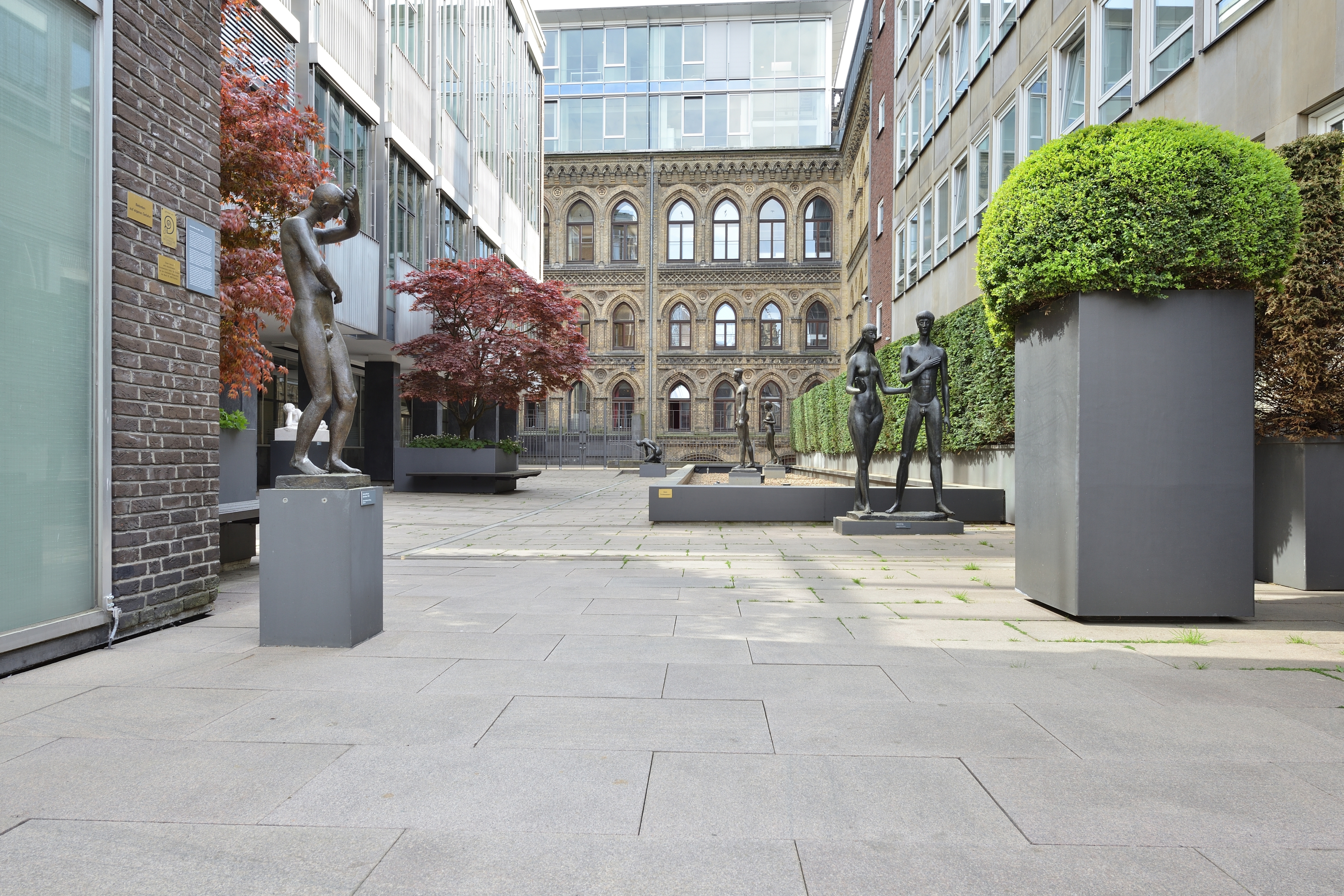 Fünf Bronzeskulpturen und eine Marmorfigur des Bildhauers Gerhard Marcks (1889–1981) sind Teil der kleinen Gartenanlage – einem urbanen Kleinod mit Wasser und Sitzbänken – neben dem Haus der Bürgerschaft. Die Skulpturen entstanden im gleichen Zeitraum wie das von Wassili Luckhardt geplante Gebäude, das 1966 eingeweiht wurde. Architektur und Bildhauerei spiegeln so ein Stück derselben Zeitgeschichte wider. An den Skulpturen lassen sich Themen einer figürlichen, mehr auf die Form als auf den Inhalt fokussierten Bildhauerkunst ablesen, wie sie Marcks favorisierte.