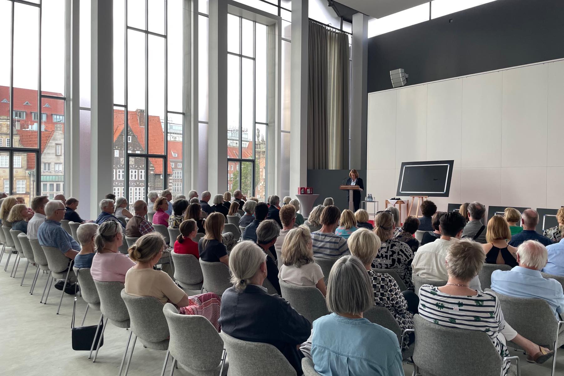 "Bremens Pressefotos des vergangenen Jahres nehmen uns mit", so Bürgerschaftspräsidentin Antje Grotheer in ihrer Begrüßung. "Sie rufen Erinnerungen hervor, sie machen uns zu heimlichen Zuschauern."