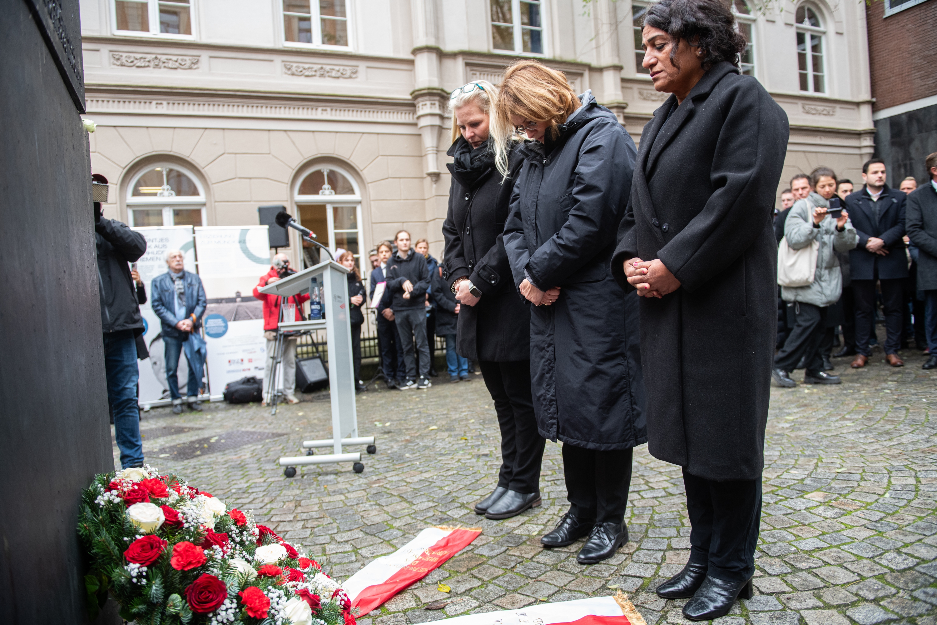 Gemeinsam mit den Vizepräsidentinnen Sahhanim Görgü-Philipp und Christine Schnittker legte Grotheer einen Kranz am Mahnmal nieder. Landesrabbiner Netanel Teitelbaum schloss die Veranstaltung mit einem Gebet.