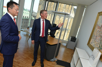 Das rund einstündige Gespräch wurde von wirtschaftlichen Themen dominiert. Generalkonsul Du berichtete vom Entwicklungsstand des neuen Infrastrukturprogramms seines Landes, der "Neuen Seidenstraße". Die Volksrepublik China möchte mit diesem Projekte ein neues Handelsnetzwerk zwischen Asien, Afrika und Europa schaffen und in den beteiligten Ländern investieren.