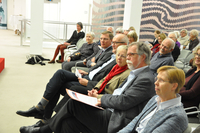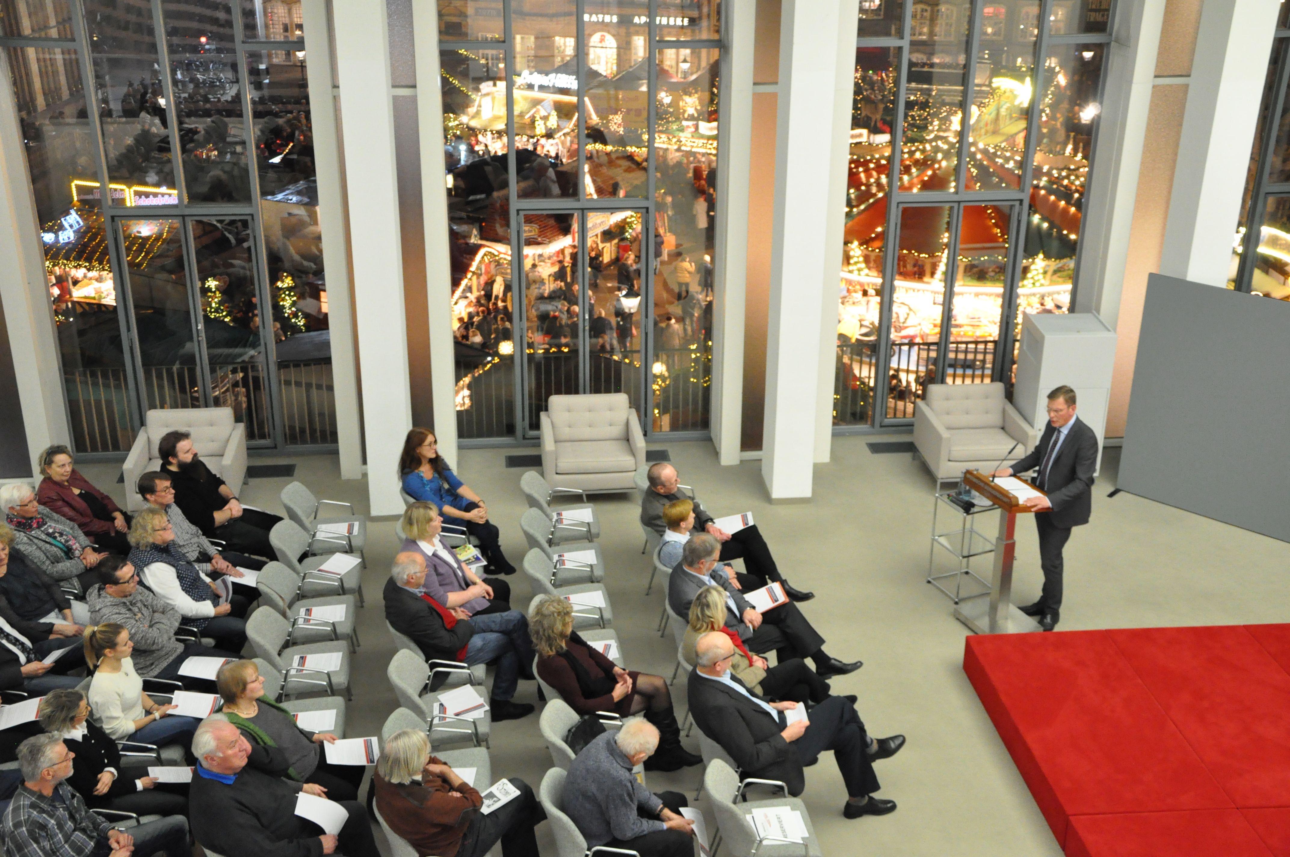 Von besonderem Unterhaltungswert bei der Eröffnung der Ausstellung waren die Beiträge von Heidi Jürgens und Dirk Böhling, die mit „Faust“, Goot gegen Nordwind“ und „Sluderee in’t Treppenhuus“ das Publikum bestens amüsierte. INS-Chef Heiko Block (Institut für niederdeutsche Sprache) führte durch das Programm, in dem Astrid Gries, Präsidiumsmitglied des Niederdeutschen Bühnenbundes Niedersachsen und Bremen von ihrem Engagement für die Jugendarbeit berichtete und Dr. Reinhard Goltz, Vorstand des INS, über die Ausstellung berichtete, von der er hofft, dass die Bremische Bürgerschaft der Ausgangspunkt einer Wanderausstellung wird.