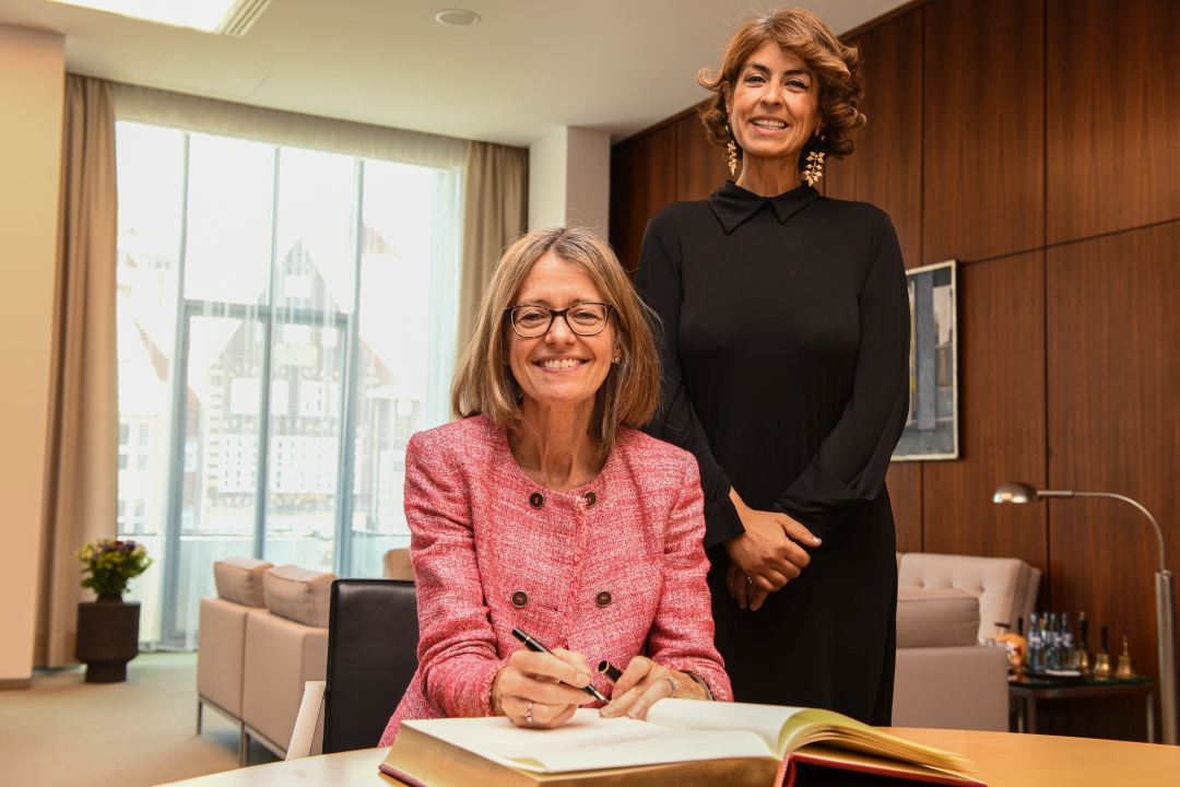 Sie sei froh, endlich diesen Besuch machen zu können, so Jill Gallard zum Auftakt des Gesprächs nach dem Eintrag ins Gästebuch. Die Corona-Pandemie habe Reisen lange verhindert - für gute Beziehungen seien diese persönlichen Begegnungen aber unerlässlich. Auf traurige Weise habe auch der russische Angriffskrieg gegen die Ukraine dazu beigetragen: Europa sei spürbar zusammengewachsen, sagte die Botschafterin.