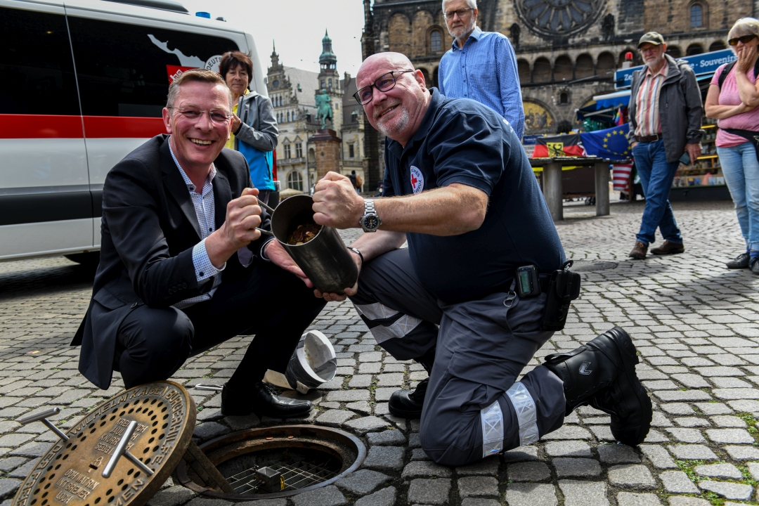 Bürgerschaftspräsident Frank Imhoff, der in dieser Funktion auch Vorsitzender der Wilhelm Kaisen Bürgerhilfe ist, nahm heute persönlich die Leerung vor und verkündete bei dieser Gelegenheit das Ergebnis, das das zweitbeste nach dem Rekordergebnis von 2019 ist: Exakt 18.490,74€ konnten die Bremer Stadtmusikanten den Besucher:innen des Marktplatzes entlocken. "„Esel, Hund, Katze und Hahn haben sich auch im vergangenen Mal viele tausend Mal bemerkbar gemacht. Vielen Dank allen Spendern, insbesondere aber den ehrenamtlichen Helfenden, die sich ganzjährig um das Bremer Loch kümmern", so Imhoff.