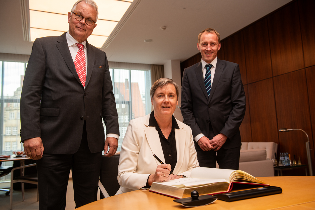 In dem knapp einstündigen Austausch zeigte die Botschafterin besonderes Interesse daran, die wirtschaftspolitischen Beziehungen zwischen Bremen und Lettland zu vertiefen. Insbesondere die Bereiche Energie und Digitalisierung hob sie dabei hervor.