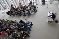 Der Nahostkonflikt schwelt seit Jahrzehnten, hat das Leben unzähliger Menschen gefordert. Familien, Kinder und Greise aber führen in dieser ständigen Unsicherheit so etwas wie Alltag. Gil Yaron, renommierter Publizist, Journalist und Kosmopolit, beleuchte im Rahmen seines Vortrages beide Seiten: die hoch komplexe politische Lage in Nahost, als auch die alltäglichen Sorgen und Freuden der dort lebenden Menschen. Mit der Lesung des israelischen Autoren fand die readers‘ corner der Bremischen Bürgerschaft ihr diesjähriges Ende. Der Festsaal war bis auf den letzten Platz gefüllt. Anschließend fand eine angeregte Diskussion in Interaktion mit dem Publikum statt. Wie er die Lage in Syrien einschätze? „Syrien ist längst ein failed state“, betonte der Nahost-Experte. Seit langem liege das Gewaltmonopol nicht mehr beim Staat. Wann endlich ein Frieden denkbar wäre? „Ich sehe derzeit eher eine Verschlimmerung des Konflikts“, so die Analyse Gil Yarons. Anschaulich umriss der Korrespondent vieler europäischer Medien die verworrenen Linien der internationalen Politik. Die interessierten Gäste waren sich einig: Die Lesung war ein anregender Abschluss der readers‘ corner 2013.