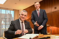Bürgerschaftspräsident Frank Imhoff konnte heute den Botschafter der Republik Türkei, Ahmet Basar Sen, zum Antrittsbesuch im Parlamentsgebäude empfangen. Der 1967 geborene Diplomat vertritt sein Heimatland seit August dieses Jahres in Berlin. Ahmet Basar Sen ist seit 25 Jahren im Diplomatischen Dienst der Türkei tätig, zuletzt als Botschafter in Usbekistan.