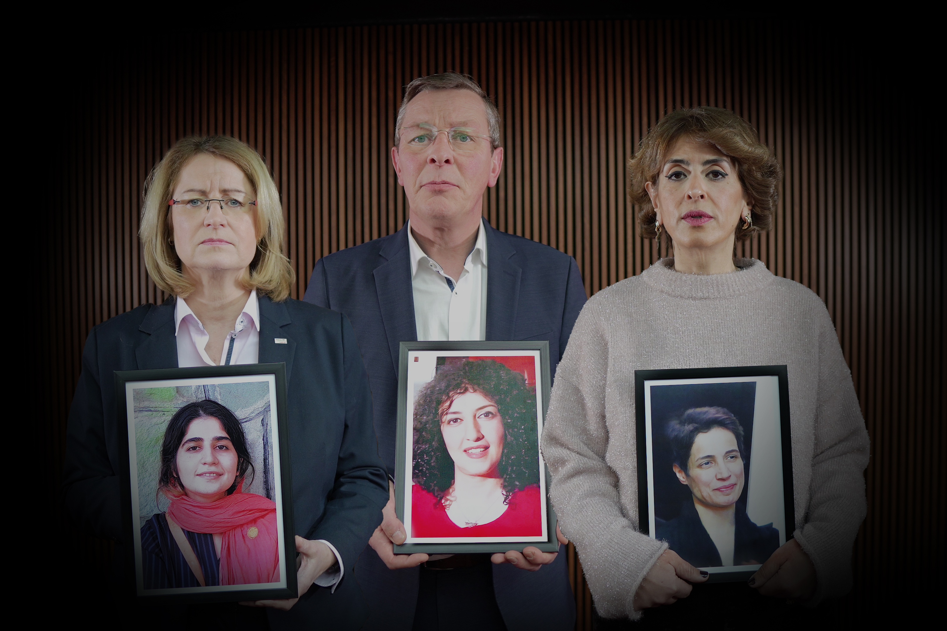 Die Botschaft von Bürgerschaftspräsident Frank Imhoff und den beiden Vizepräsidentinnen Antje Grotheer und Sülmez Çolak: "Wir schauen nicht weg. Für Narges Mohammadi, Sepideh Gholian, Nasrin Sotoudeh und all die anderen Frauen."