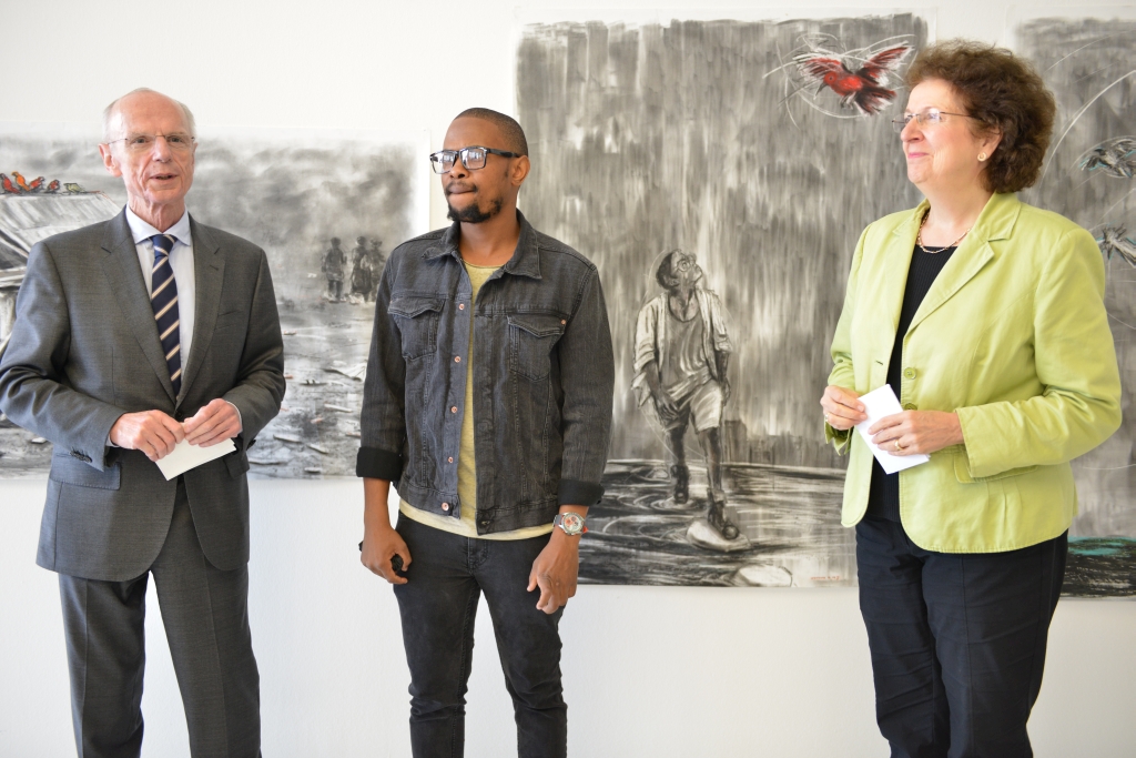 Bürgerschaftspräsident Christian Weber hat heute die Abschlussausstellung des aktuellen Bremer Kunststipendiaten Buhle Wonder Mbambo aus Durban (Südafrika) der Öffentlichkeit vorgestellt. Die Ausstellung im Foyer der Bremischen Bürgerschaft umfasst Werke, die während Mbambos dreimonatigen Aufenthaltes in der Hansestadt entstanden sind.