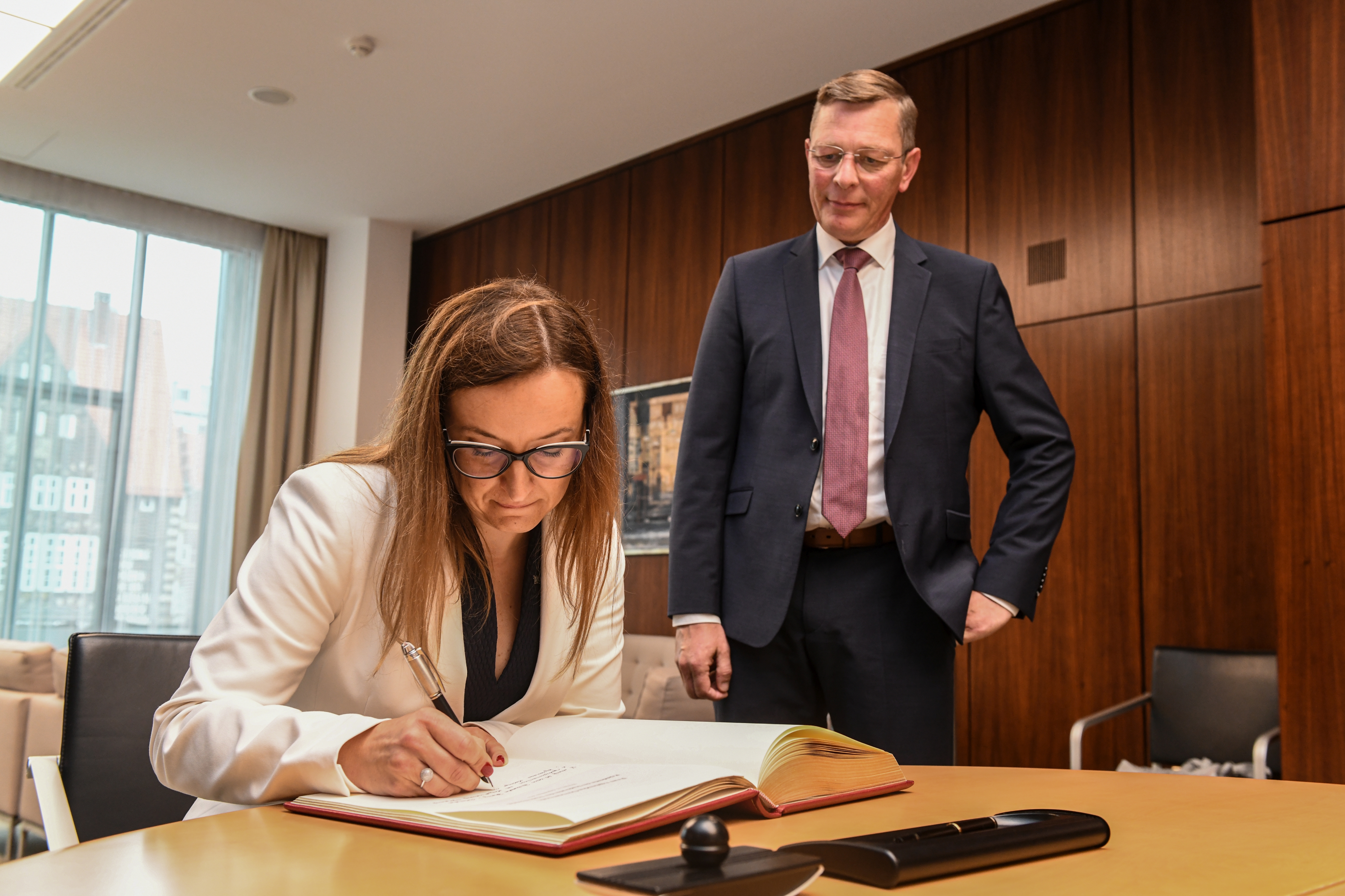 Agnieszka Owczarczak wird sich heute und morgen über die parlamentarische Arbeit der Bürgerschaft informieren. Unter anderem steht ein Austausch mit der Enquetekommission sowie mit dem Ausschuss für Bundes- und Europaangelegenheiten, internationale Kontakte und Entwicklungszusammenarbeit auf dem Programm. Am Abend wird die Präsidentin des Stadtrates außerdem an der Verleihung des Ritterkreuzes des Verdienstordens der Republik Polen teilnehmen. Generalkonsul Pawel Jaworski verleiht die Auszeichnung an Rainer Nalazek und posthum an den ehemaligen Bürgerschaftspräsidenten Christian Weber, für deren Verdienste um die deutsch-polnische Verständigung.