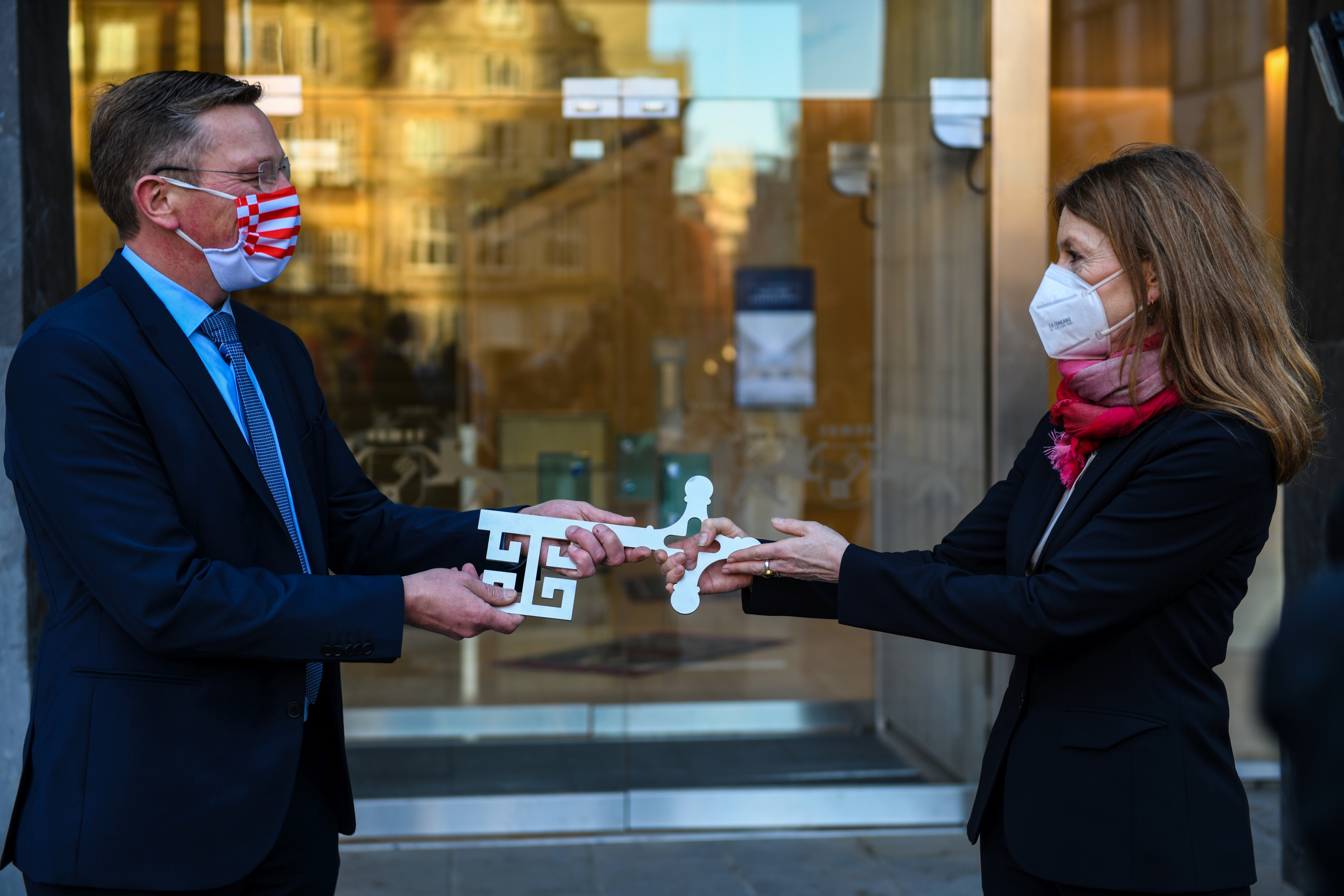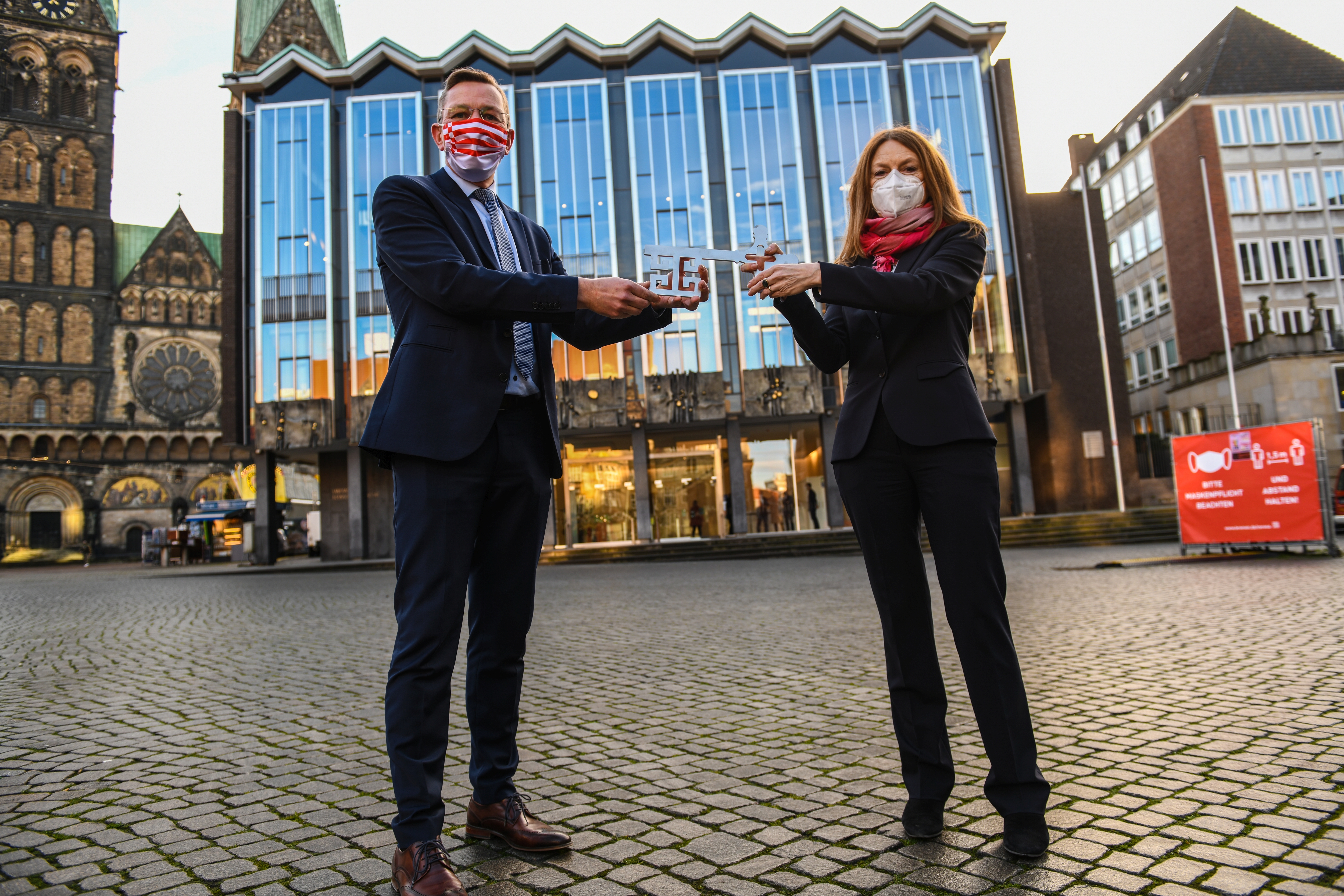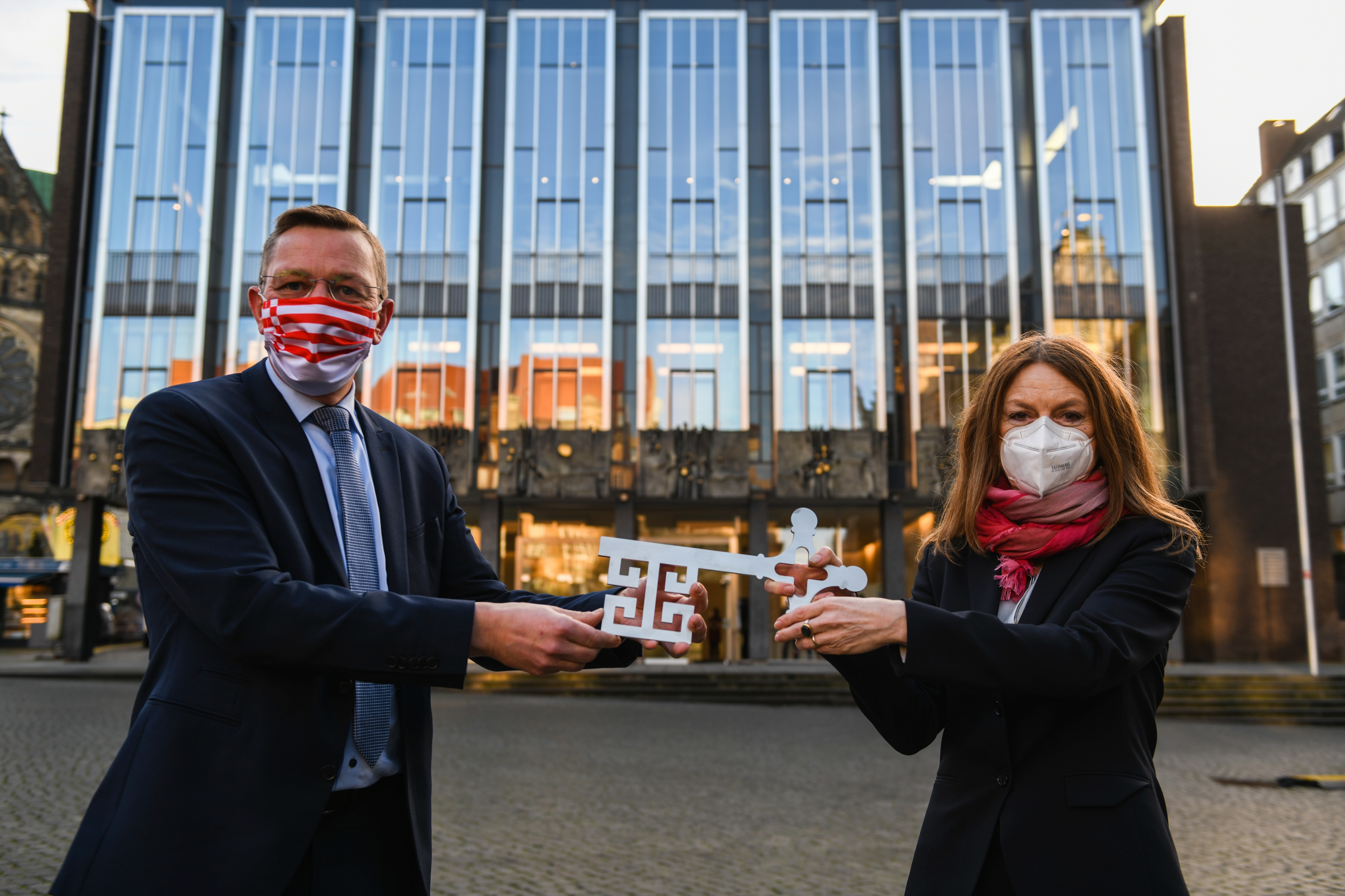 Bürgerschaftspräsident Frank Imhoff hat heute (18.12.2020) die Schlüssel für das Haus der Bürgerschaft zurückerhalten. Das Landtagsgebäude ist in den vergangenen 18 Monaten unter der Leitung von Immobilien Bremen (IB) saniert worden. In dem Gebäude aus den 60er-Jahren wurden der Brandschutz und die Haustechnik auf den neuesten Stand gebracht, außerdem wurde die Sicherheit durch den Einbau von speziellem Sicherheitsglas erhöht. Die Sanierung war dringend notwendig, u.a. um die gesetzlichen Brandschutz-Auflagen erfüllen zu können. Die Kosten lagen bei zehn Millionen Euro.