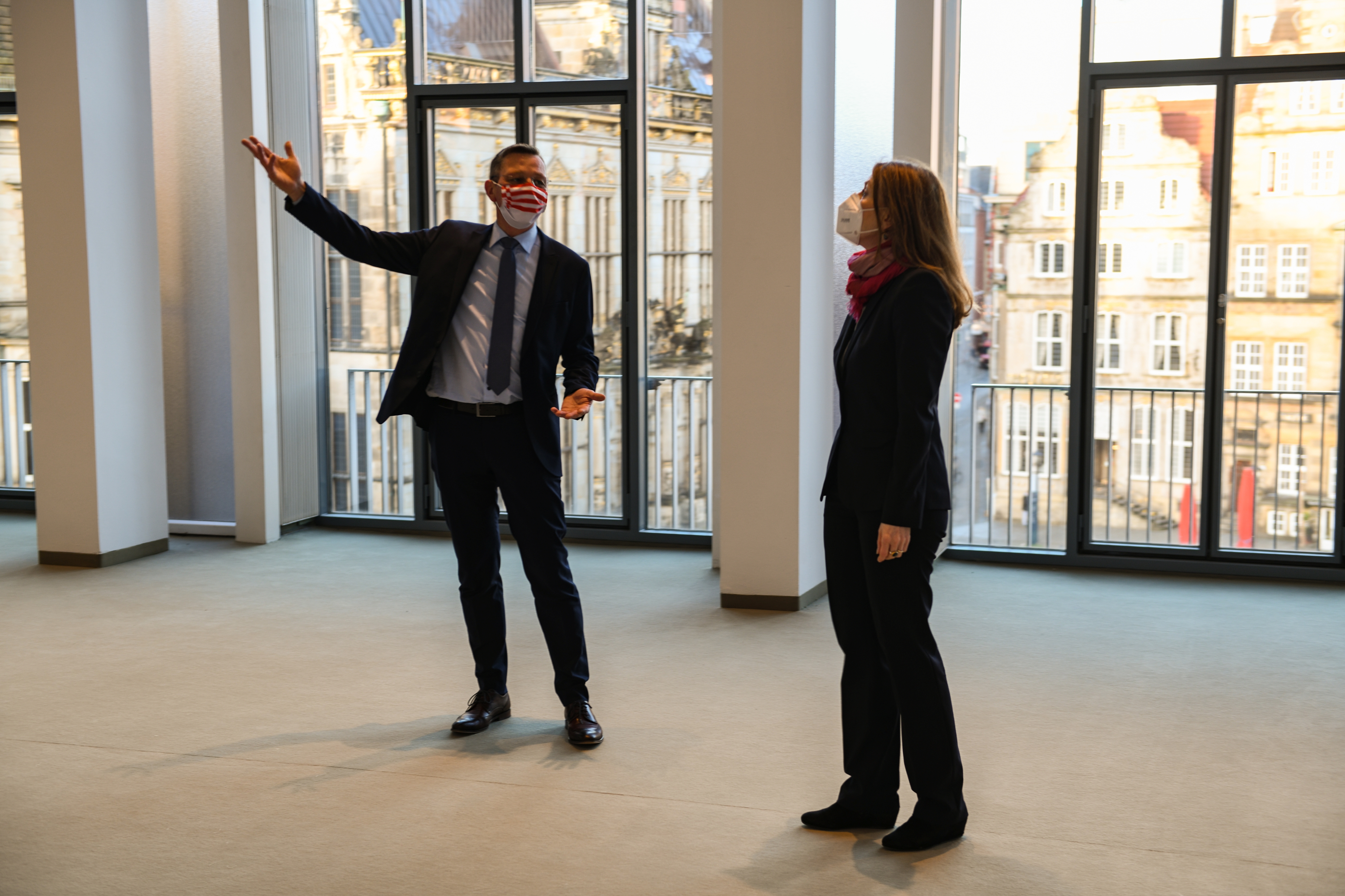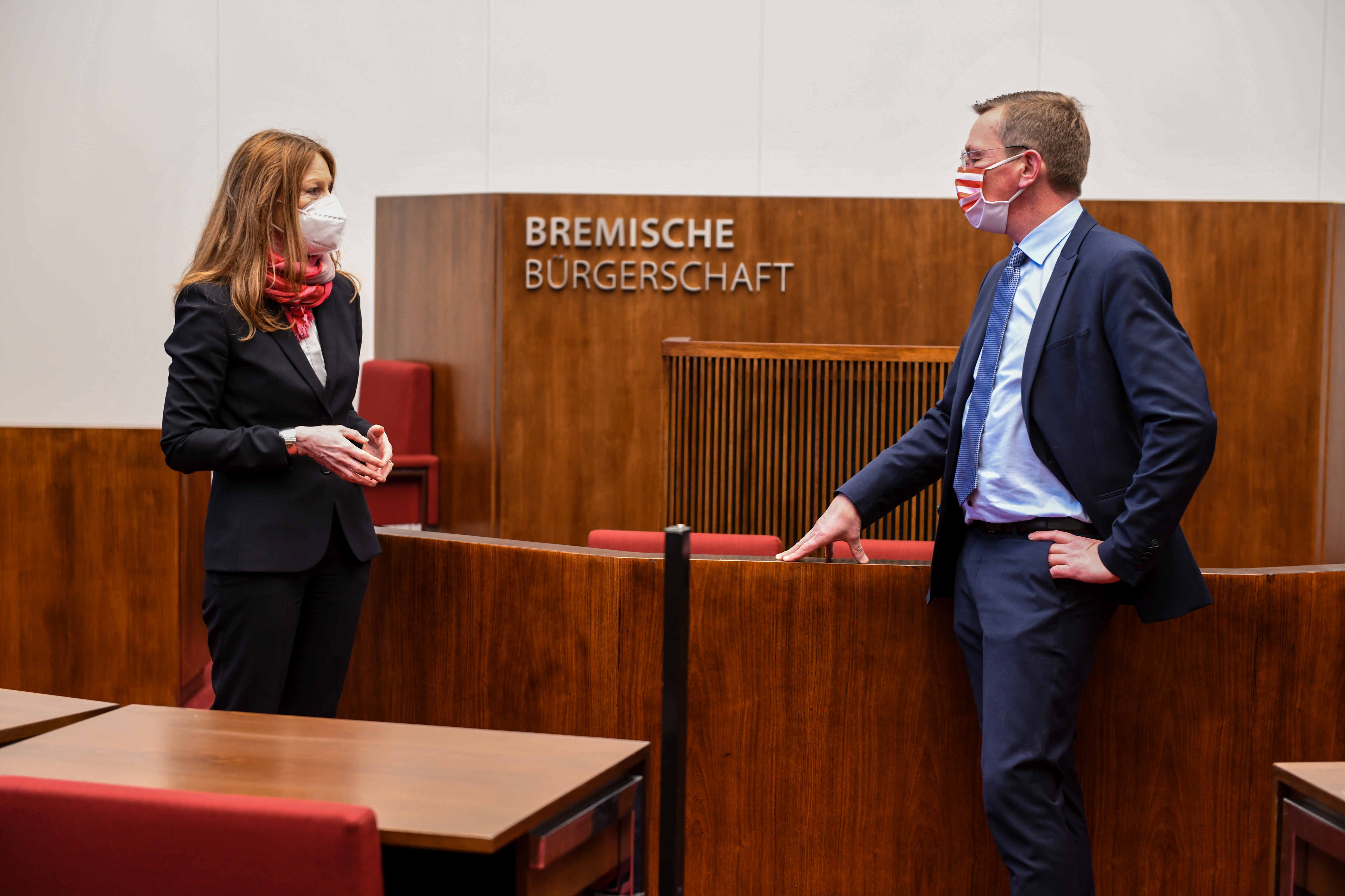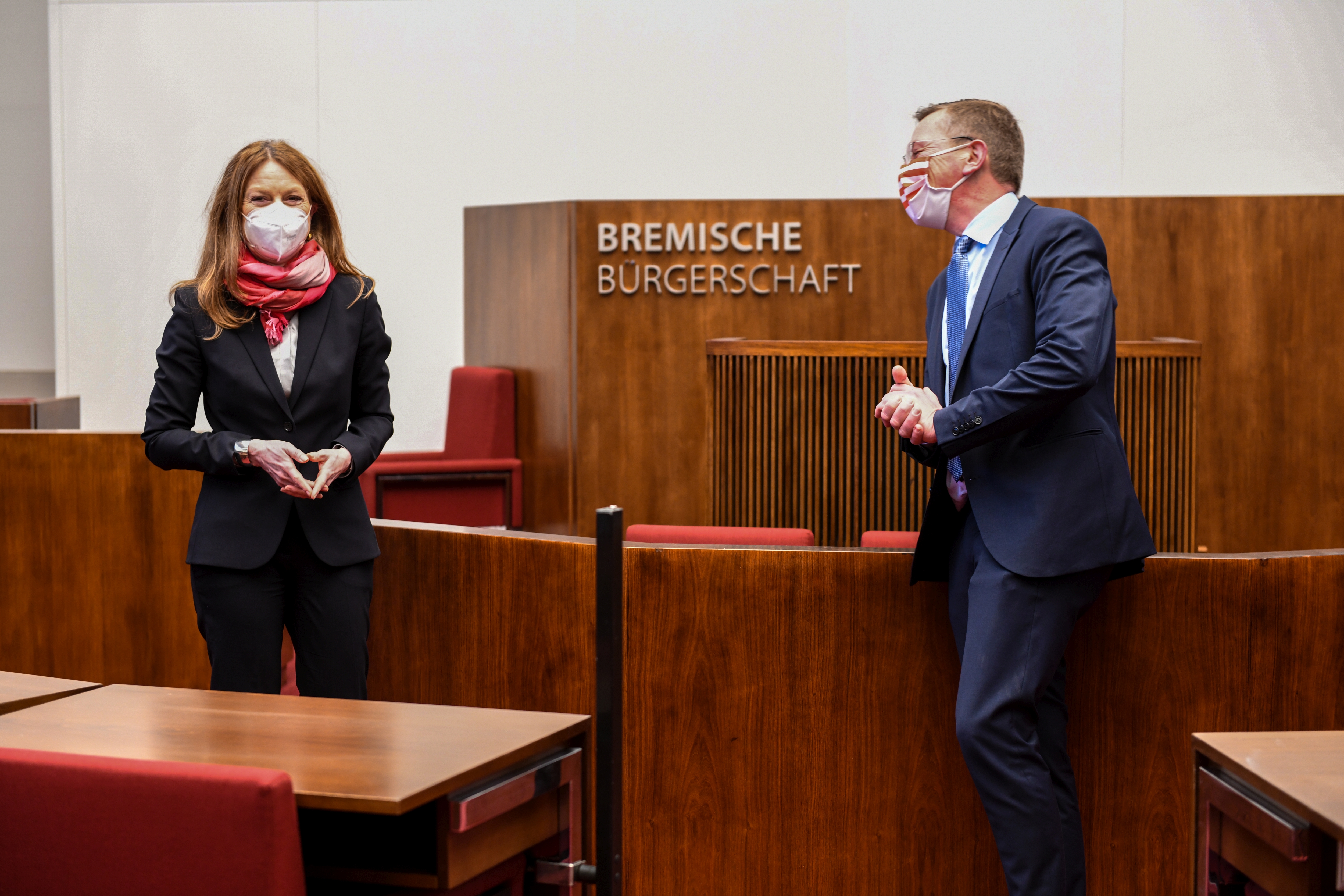 Susanne Kirchmann, Geschäftsführerin IB: „Wir sind froh und auch stolz, dass wir den Schlüssel für das frisch sanierte Gebäude der Bremer Bürgerschaft trotz aller pandemiebedingten Widrigkeiten noch in diesem Jahr zurückgeben konnten. Auch für Immobilien Bremen ist das Gebäude aus den 1960er Jahren ein sehr besonderes. Ganz dem Denkmalschutz verpflichtet wurde hier sehr behutsam saniert, sodass es der Besucher erst auf dem zweiten Blick wahrnehmen wird. Ausdrücklicher Dank gilt hier insbesondere allen Handwerker*innen und Büros, die unter erschwerten Bedingungen im steten Einsatz waren, um eine rasche Umsetzung zu realisieren.“