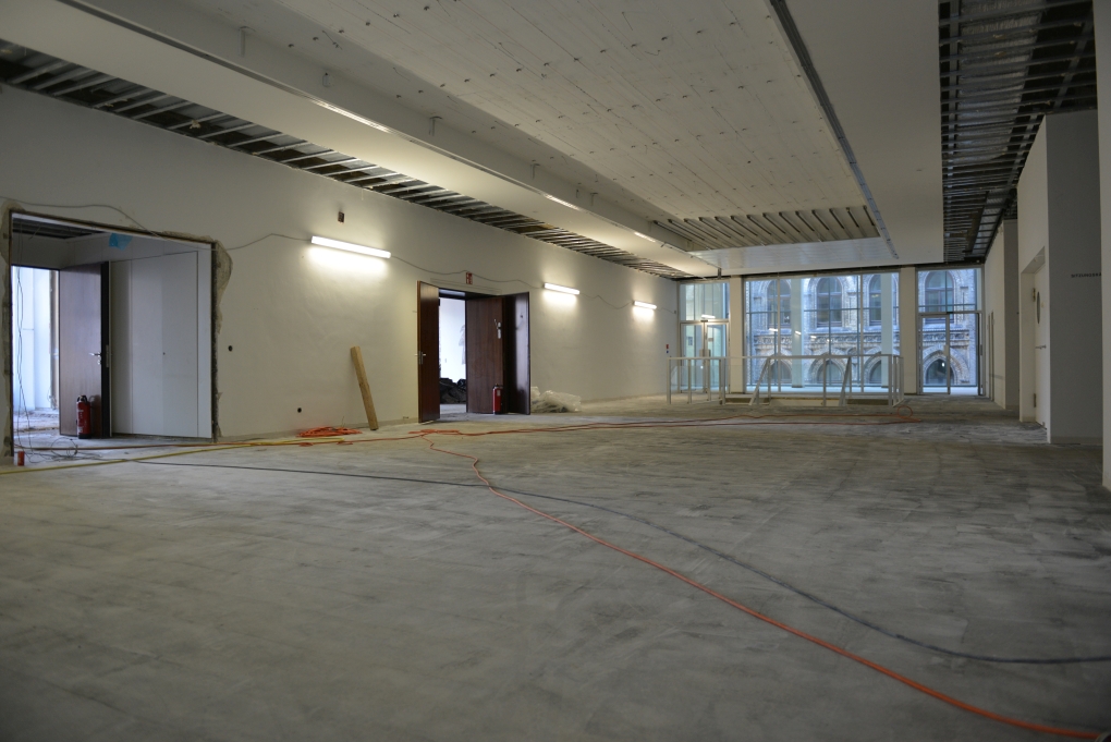 Im Erdgeschoss werden derzeit die Fensterscheiben gegen Sicherheitsglas ausgetauscht. Das ist aufwendig, weil beim Bau des Hauses asbesthaltiger Fensterkitt verwendet wurde. Vor allem aber entspricht der Brandschutz im Parlamentsgebäude nicht mehr den heutigen Auflagen. Und da aus diesem Grund die Decken ohnehin geöffnet werden mussten, werden bei der Gelegenheit auch gleich neue Leitungen verlegt, um das Gebäude fit für die digitale Verwaltung zu machen. Das ist der Plan für die nächsten anderthalb Jahre. Zehn Millionen Euro wurden für die Bauarbeiten veranschlagt. „Es ist bislang alles im Kosten- und im Zeitrahmen“, versichert Projektleiter Jörg Meyer. Böse Überraschungen habe es noch nicht gegeben. Solche Arbeiten „im Bestand“ seien aber immer eine Herausforderung.