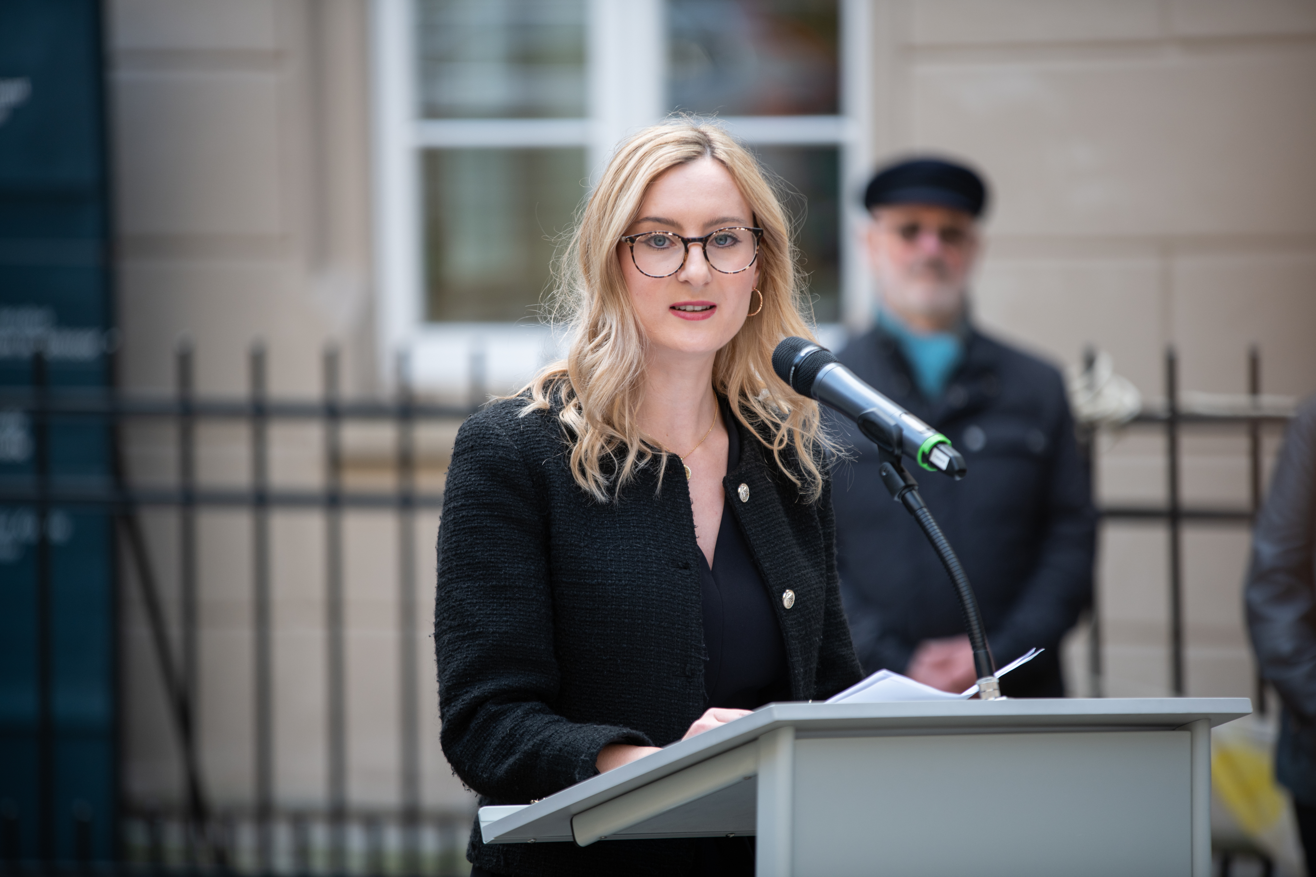 "Wir erinnern heute an die dunkelsten Stunden der Geschichte Deutschlands und gedenken der Opfer der Shoa. Nicht aber zum Selbstzweck, sondern als Handlungsaufforderung. Denn Mensch-Sein bedeutet zu handeln", sagte Anna Staroselski in ihrer Rede. 1938 hätten sich Nachbarn gegen Nachbarn, Freunde gegen Freunde und Kollegen gegen Kollegen gewandt. Die Mehrheit der Deutschen habe nicht widersprochen und weggesehen bis es zu spät gewesen sei. Auch heute noch lebe man ein anderes Judentum in Deutschland als vor 1945. Historische Verantwortung übernehme man nicht, indem man diese gebetsmühlenartig Jahr für Jahr wiederhole: "Was geschehen ist, kann nicht wieder gut gemacht werden. Wir sind es aber den 6 Millionen ermordeten Jüdinnen und Juden, den Überlebenden, die die Hölle auf Erden erlebten und allen ihren Angehörigen, die das Trauma vererbt und weitergetragen haben, schuldig, Tag für Tag gegen Judenhass zu kämpfen. Das bedeutet historische Verantwortung!", machte Staroselski deutlich.