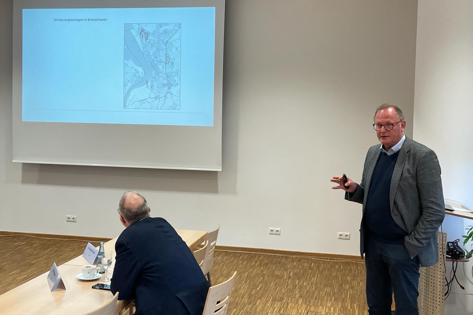 Vor Beginn der Ausschusssitzung informierten sich die Mitglieder des Ausschusses über das neue Konzept des Klimahauses bei Investor Klaus Meier. Während der Ausschusssitzung stellte u.a. BIS-Geschäftsführer Nils Schnorrenberger die Entwicklung der On- und Offshorewirtschaft in der Seestadt dar. Dr. Saskia Greiner informierte über den Aufbau der Wasserstoffwirtshcaft in Bremerhaven. Die Ausschussmitglieder hatten auch Bürgermeister Torsten Neuhoff eingeladen, um den Stand der Mobilitätswende zu präsentieren.