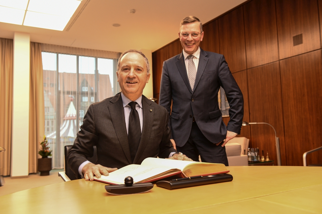 Bürgerschaftspräsident Frank Imhoff konnte heute den Botschafter der Italienischen Republik, Armando Varricchio, zum Antrittsbesuch im Parlament begrüßen. Begleitet wurde der Botschafter von Generalkonsul David Michelut und Honorarkonsul Marco Fuchs. Armando Varricchio hat seinen Posten in Berlin im Juni dieses Jahres angetreten, zuvor war der Diplomat unter anderem als Botschafter seines Landes in Belgrad und Washington tätig.