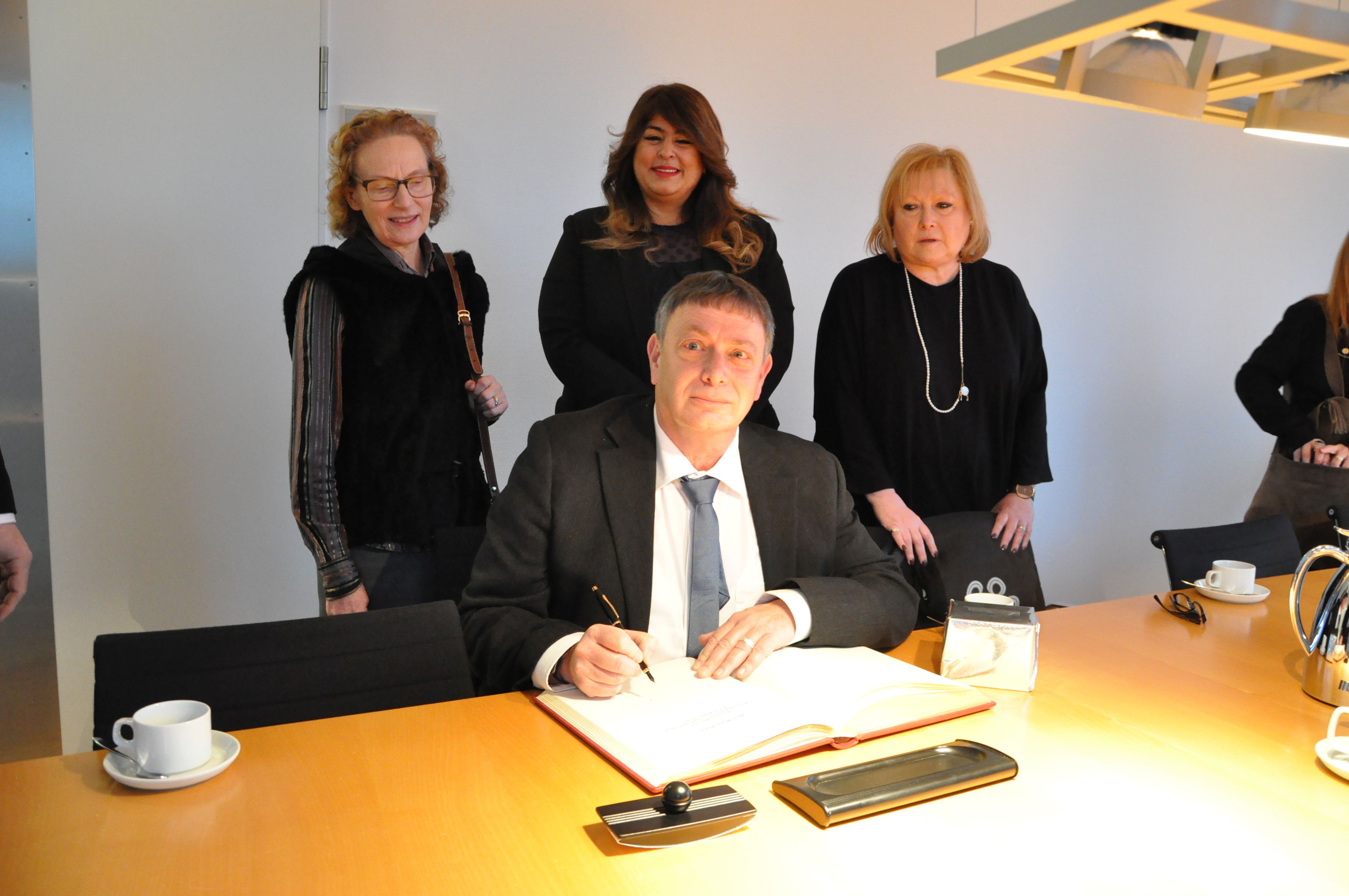 Zwölf Schulleiter aus dem nördlichen Israel wurden am Donnerstag von der Vizepräsidentin der Bremischen Bürgerschaft, Sülmez Dogan, in Empfang genommen. „Das ist ein große Ehre für uns, hier im Parlament zu sein und wir möchten Ihnen dafür einen herzlichen Dank aussprechen“, schrieb Rami Porat (Managing Director ORT Comprehensive School and College) ins Gästebuch der Bürgerschaft. Dogan betonte ebenfalls wie wichtig der Austausch mit Israel in diesen Zeiten ist und wie wichtig insbesondere der Austausch über die Schulen ist.