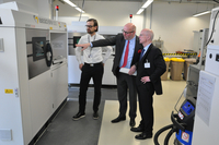 Besonders beeindruckt zeigte sich Präsident Weber, als Weiss ihn durch eine Abteilung führt, die in mehreren Labors bis hin zu einer Rein-Abteilung Implantate bearbeitet. „Einen Studenten aus Bremerhaven haben wir mit der Idee betraut. Er hat diese ausformuliert, dann als Modell weiterentwickelt. Und heute sind hier mehrere Mitarbeiter in mehreren Laboren damit betraut, die Ergebnisse umzusetzen. Ein exzellent erfolgreiches Start-up innerhalb der Firma.“