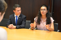 "In unserer Schuler sind die meisten Schülerinnen und Schüler jüdischen Glaubens. Ich bin dort als arabische Christin in der Minderheit. Doch bei uns werden keine Unterschiede zwischen den Kulturen gemacht - auch wenn wir nicht in allen Dingen einer Meinung sind, so sind wir trotzdem Freunde", berichtete Lorraine Jiryes dem Bürgerschaftspräsidenten.