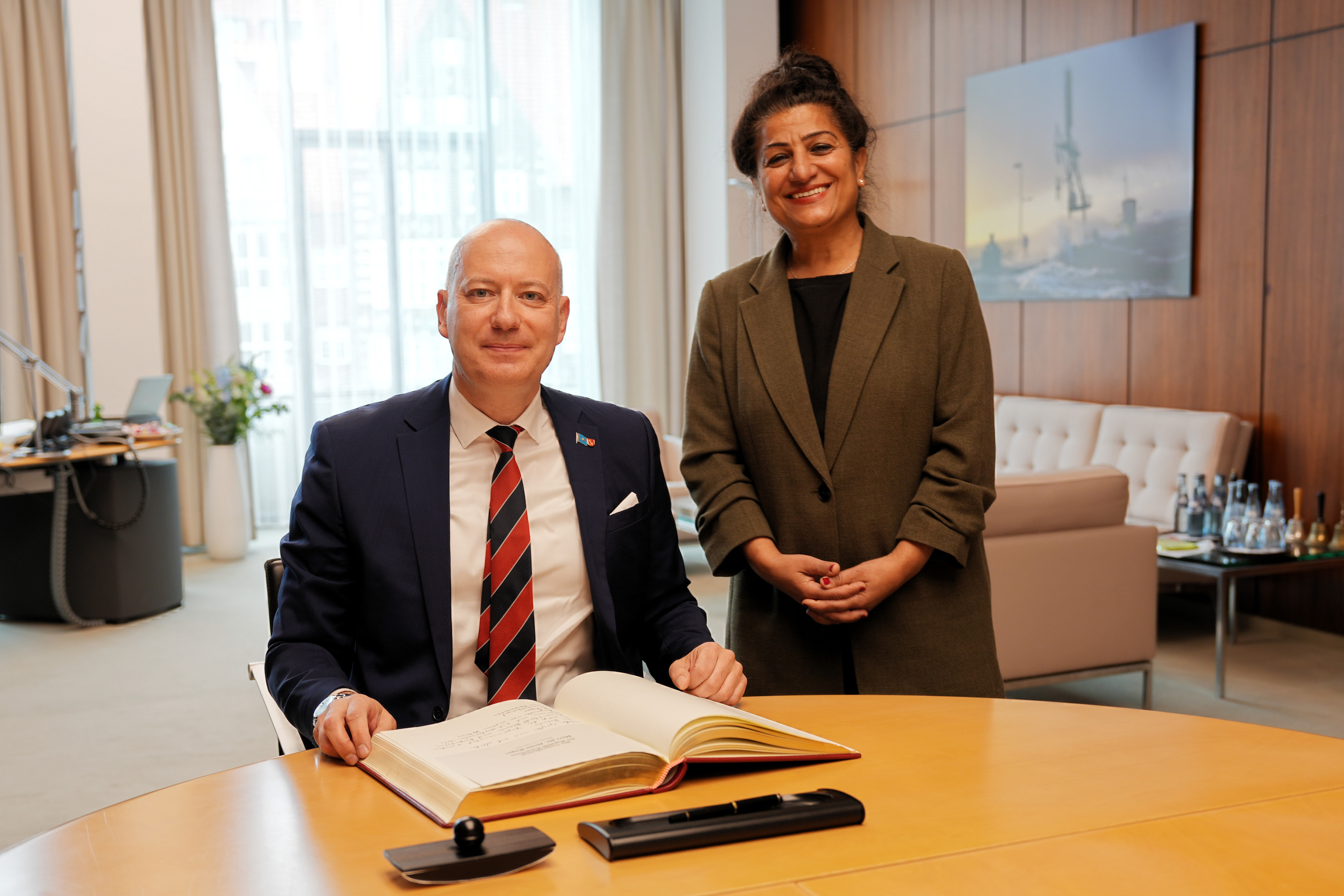 Bürgerschaftsvizepräsidentin Sahhanim Görgü-Philipp konnte heute den Generalkonsul der Republik Kasachstan in Hamburg, Dr. Denis Rogov, zum Antrittsbesuch im Parlamentsgebäude am Marktplatz begrüßen. Das Generalkonsulat in Hamburg wurde erst im Mai dieses Jahres eröffnet und ist neben München und Frankfurt am Main die dritte konsularische Vertretung Kasachstans in Deutschland.