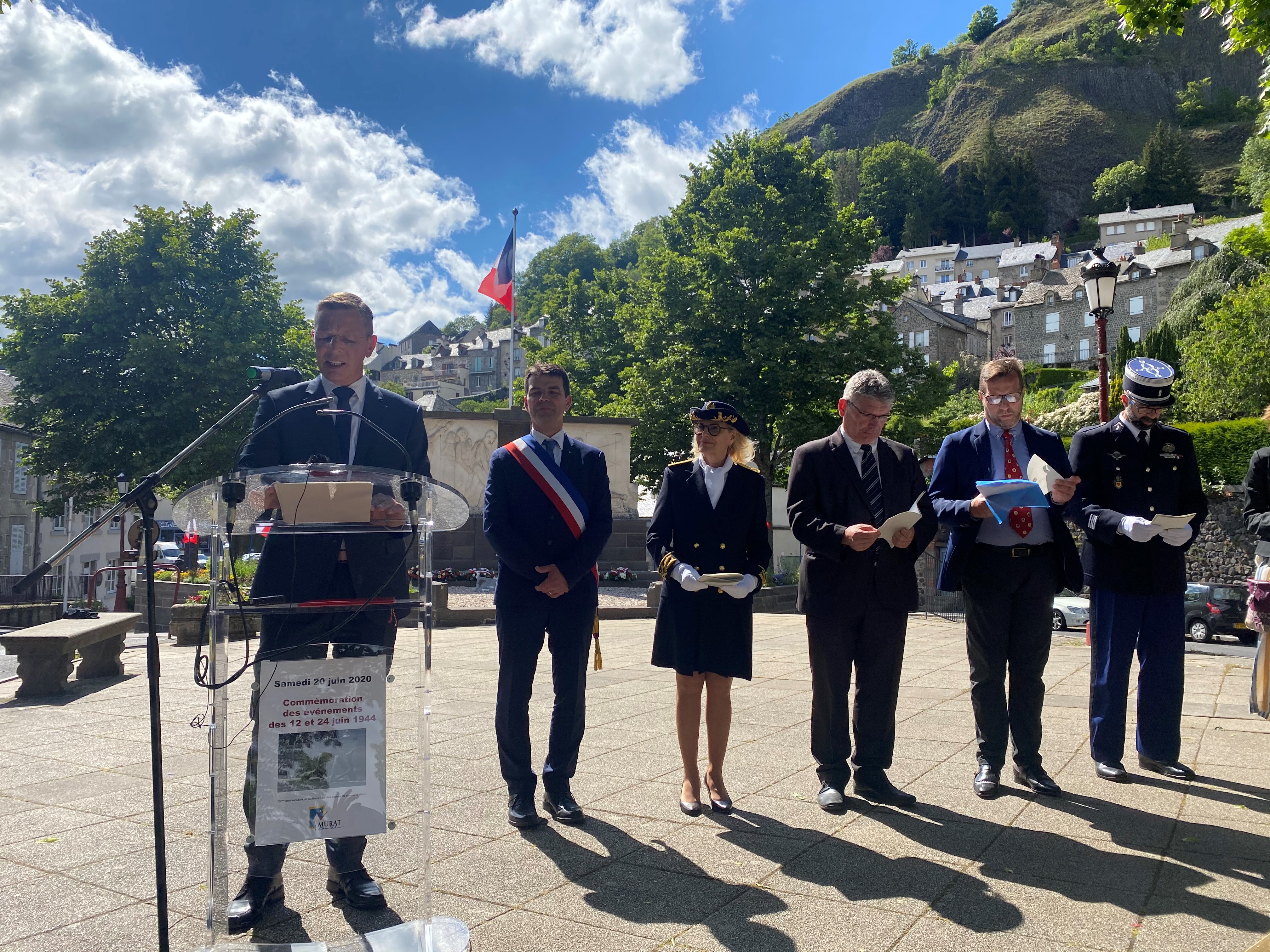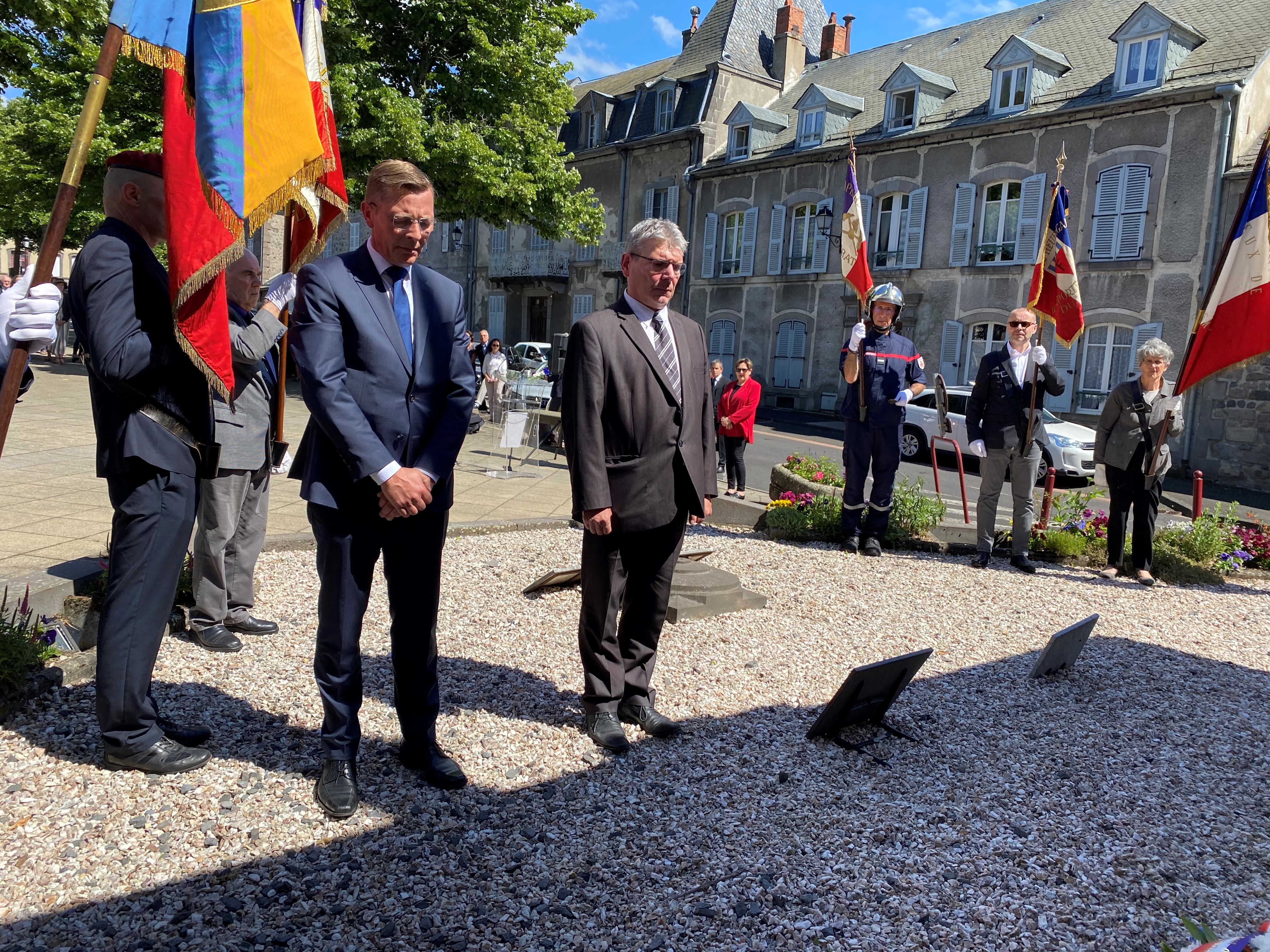 Murat war am 24. Juni 1944 Opfer einer sogenannten „Vergeltungsmaßnahme“ der deutschen Wehrmacht geworden: 119 Männer wurden damals nach Deutschland deportiert und mussten insbesondere am Bunker Valentin Zwangsarbeit leisten. Nur 34 von ihnen kamen zurück nach Murat. „Als der Krieg vorbei war, starb in Murat langsam die Hoffnung auf eine Rückkehr der Männer, Väter, Großväter. Das Ausmaß der Tragödie wurde erst jetzt deutlich: Murat wurde zu einem ‚Dorf der schwarzen Witwen‘“, so Imhoff weiter, der am Nachmittag am Landesdenkmal zur Erinnerung an die Deportierten, am Place du Balat, einen Kranz niederlegte.