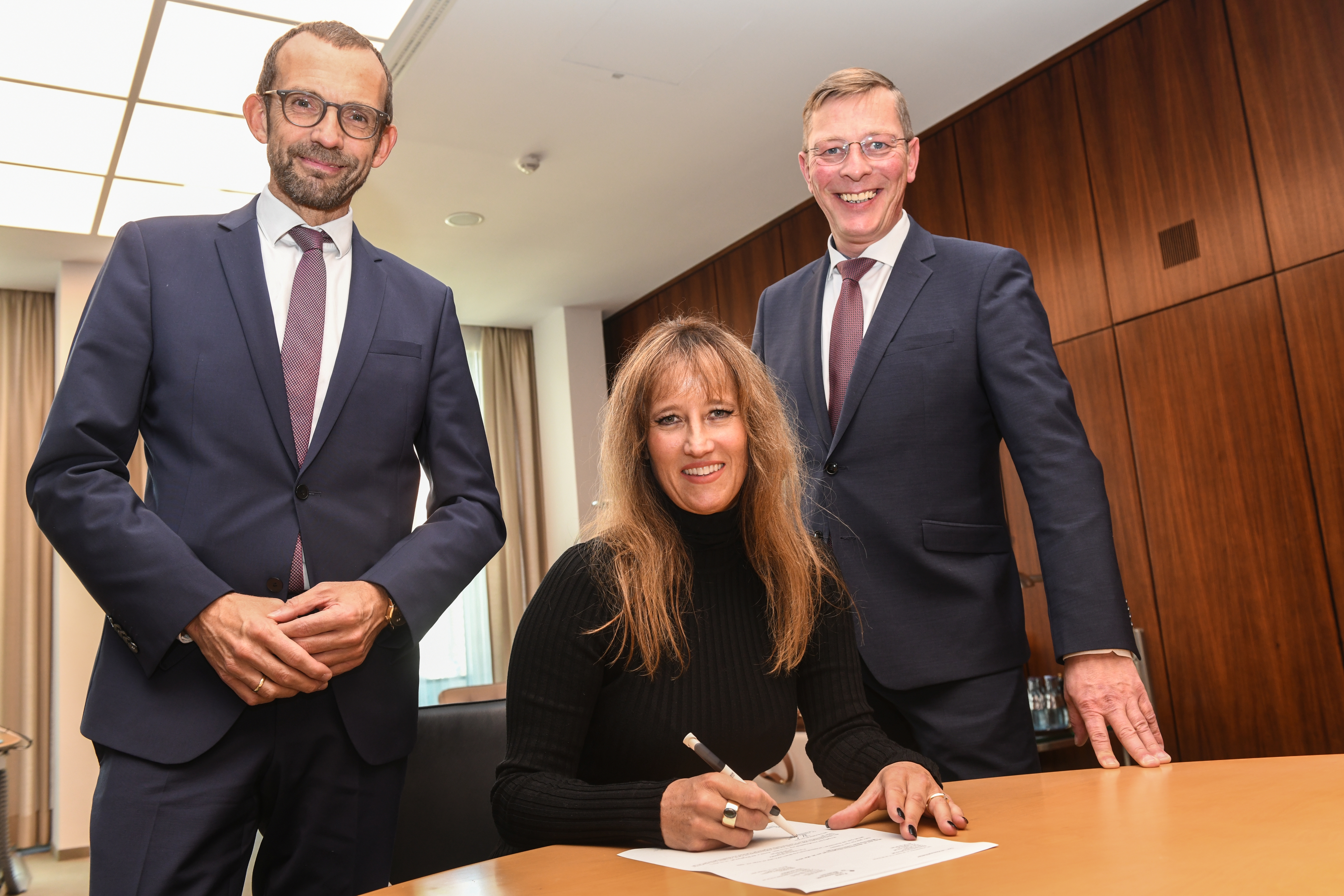 Foto zur redaktionellen Verwendung: v.l.n.r. Thomas Röwekamp, Melanie Morawietz, Frank Imhoff (Quelle: Bürgerschaftskanzlei)