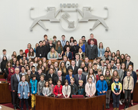 Der Bundespräsident erwiderte vor 83 Jugendlichen, die auf den Abgeordnetenstühlen Platz genommen hatten, dass er und seine Frau Elke Büdenbender es als ihr Alltagsgeschäft betrachteten, vor allem mit Jugendlichen den Kontakt zu suchen und zu pflegen. „Ich frage mich immer, wie wir Älteren im Zeitalter von Social Media den Zugang zu Euch finden.“ Es sei wichtig, das Gespräch so zu organisieren, dass man sich noch gegenseitig verstehe. Frank-Walter Steinmeier bestärkte die Schülerinnen und Schüler in ihrem gesellschaftlichen Engagement: „Politik beginnt nicht im Landtag oder im Bundestag, sondern da, wo man anfängt, sich um das eigene Umfeld zu kümmern.“ Machen statt meckern – dieses Motto, das die jungen Leute von sich aus in die Diskussion eingebracht hatten, sei nicht antiquiert, sondern aktuell. „Es lohnt, sich zu Wort zu melden und sich einzumischen; wir können Euch nur Mut machen“, appellierten beide, der Bundespräsident und Elke Büdenbender.