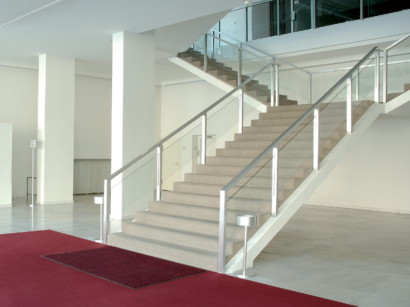 Sie betreten das Haus durch einen gläsernen Eingang vom Marktplatz aus. Sie stehen in einer Halle mit weißem Astir-Marmor. Durch die hellen Farben und die Höhe der Räume entsteht überall eine großzügige Weite. Im ersten Stock befinden sich die Büros der Präsidentin, des Direktors und der Pressesprecherin. Abgehend von der dortigen Mittelhalle liegen vier unterschiedlich große Sitzungsräume. Diese werden vor allem von den Fraktionen genutzt.