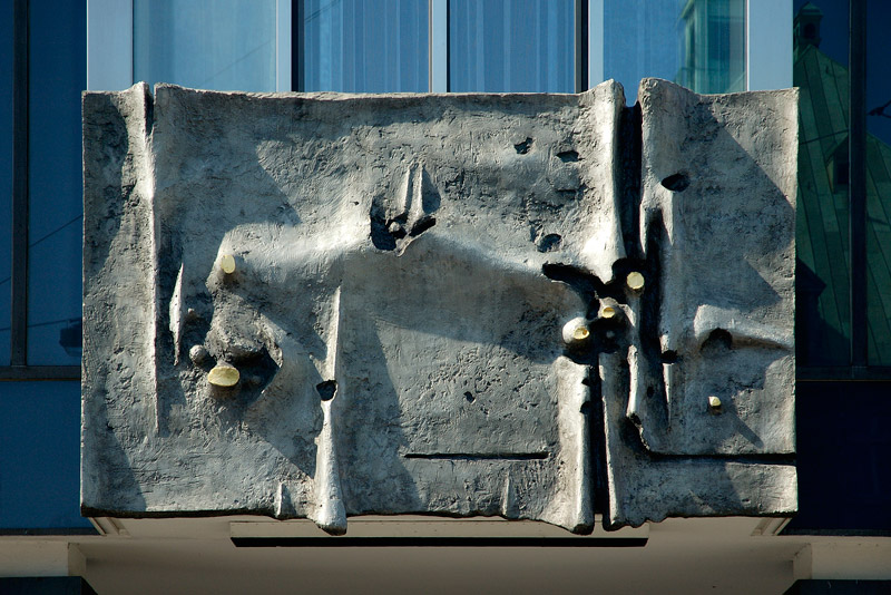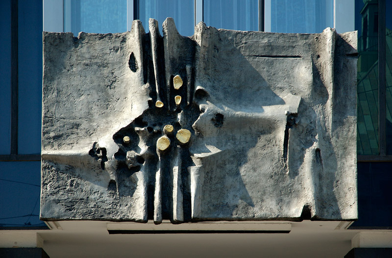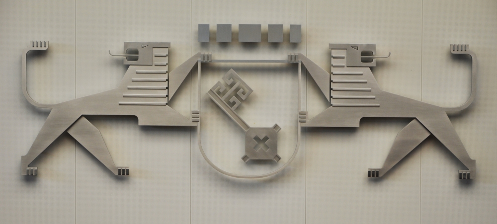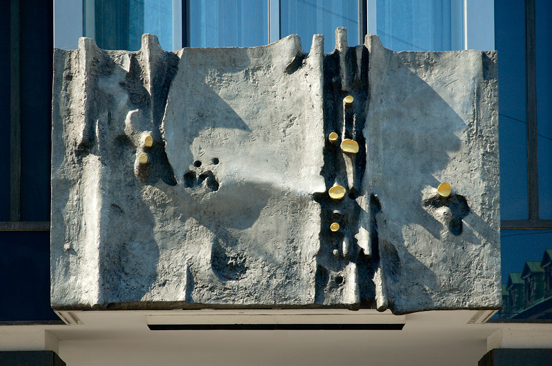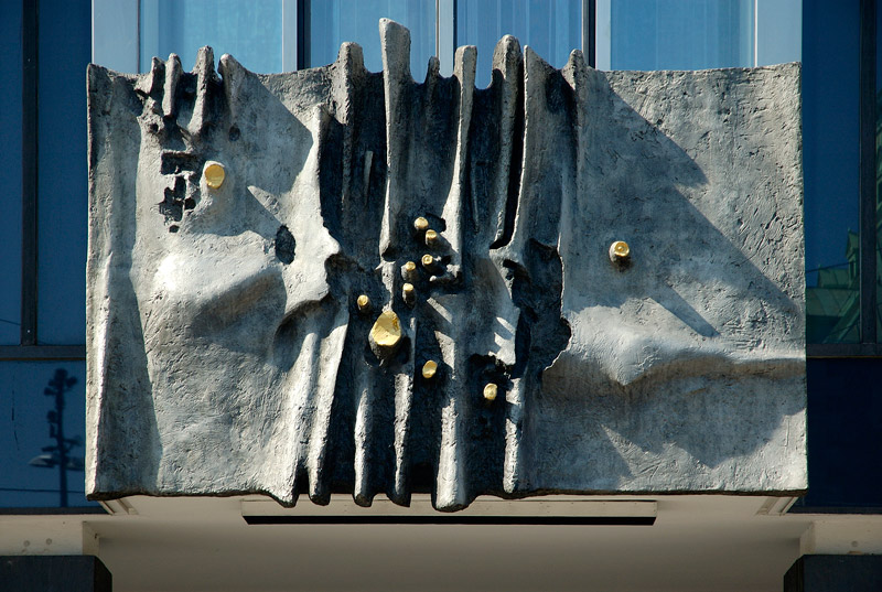 Die Aluminum-Reliefs sind seit der Eröffnung 1966 Teil der frontseitigen Außenfassade des Hauses der Bürgerschaft.